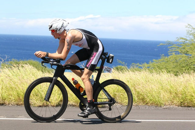 Get used to being down on the bars for long periods of time in training as the bike course and head winds reward athletes who can stay aero for long periods.